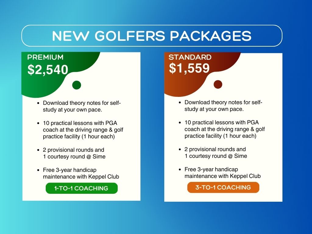 The Learn Golf@Sime programme is designed to be a seamless, efficient way to learn golf in Singapore. It includes 10 hours of practical lessons with a PGA-certified coach, along with self-study of golf etiquette theory and provisional rounds. Upon completion, you’ll receive your golf handicap and be able to participate in Keppel Club events. However, learners should be diligently practising on their own, as the 10 hours of practical lessons serve as coaching and do not guarantee that every participant will be ready to take the handicap test immediately. For further information, contact us via Whatsapp at 98536759.